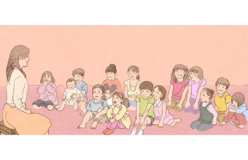絵本の読み聞かせをしている最中、読み手の視線は絵本に向いていますが、ストーリーテリングでおはなしを語っている時、語り手は聞き手の子どもたちを見ています。
